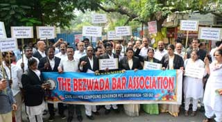 బార్ కౌన్సిల్ ఆఫ్ ఇండియా పిలుపు మేరకు న్యాయవాదులు రోడ్డెక్కారు. తమ సమస్యలను పరిష్కరించాలని డిమాండ్ చేస్తూ బెజవాడ బార్ అసోసియేషన్, ఏపీ బార్ కౌన్సిల్ ఆధ్వర్యంలో మంగళవారం విజయవాడలో ధర్నాలు చేశారు. సివిల్ కోర్టు సమీపంలో మానవహారం నిర్వహించారు.