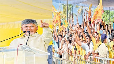 ఇవ్వబోమంటే ఎదురు తిరగండి. అలాగే పసుపు-కుంకుమ చివరి విడత రూ.4 వేలు నా చెల్లెమ్మల అకౌంట్లలో జమచేస్తా. తెలంగాణలో ఇప్పటికీ రూ.వెయ్యే పింఛను. ఇక్కడ రూ.2 వేలిస్తున్నాం. త్వరలో రూ. 3 వేలిస్తాం. రైతులకు అక్కడ రూ.లక్ష రుణమాఫీ చేస్తే ఇక్కడ రూ.1.50 లక్షలు చేశాం. డ్వాక్రా సంఘాలకు నయా పైసా కేసీఆర్ ఇవ్వలేదు. ఇక్కడ రెండు విడతలుగా పసుపు, కుంకుమ కింద రూ.10 వేల చొప్పున రూ.20 వేలు ఇచ్చా. మళ్లీ అధికారంలోకి రాగానే రాబోయే ఐదేళ్లలో మరో మూడుసార్లు ఇస్తా. రెండు పండుగలకు రెండు గ్యాస్ సిలిండర్లు ఉచితంగా ఇస్తా. కోటిమంది చెల్లెమ్మలకు స్మార్ట్ఫోన్లు ఇస్తా. యువనేస్తం కింద నిరుద్యోగులకు రూ.3వేల భృతి ఇస్తా. ఇంటర్ చదివినవారికీ భృతి చెల్లించి ఆదుకుంటా. చంద్రన్న బీమాను రూ.10 లక్షలకు, పెళ్లికానుకను రూ.లక్షకు, ఆరోగ్యరక్షను అవసరమైతే రూ.20 లక్షల వరకు ఇచ్చి పేదలను ఆదుకుంటా.