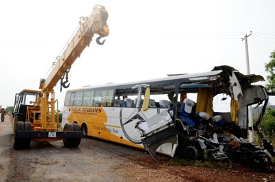 కాగా, నెల వ్యవధిలో ఎస్ఆర్ఎస్ ట్రావెల్స్ బస్సుకు ఇది రెండో ప్రమాదం. మే 11న వెల్దుర్తి వద్ద ఓ మోటారు సైకిలిస్టును తప్పించబోయి ఓ వాహనాన్ని ఢీకొట్టింది. ఆ ప్రమాదంలో బస్సులో ఉన్న 16 మంది దుర్మరణం పాలయ్యారు.