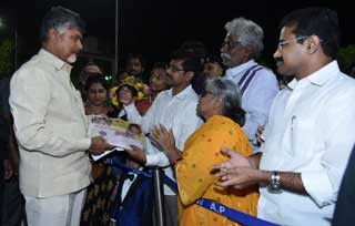 రాజధాని అమరావతి నిర్మాణానికి ఓ అంధురాలు రూ.లక్ష విరాళాన్ని సీఎం చంద్రబాబుకు అందజేసింది. గుంటూరు జిల్లా తుళ్లూరు మండలం రాయపూడికి చెందిన గూడూరు నాగేంద్రమ్మ తనకు గ్రామంలో ఉన్న నాలుగెకరాల భూమిపై వచ్చిన ఆదాయాన్ని రాజధాని నిర్మాణానికి అందజేసింది. ఆమె గురువారం ఉండవల్లి ప్రజావేదికలో సీఎం చంద్రబాబును కలిసింది. రాజధాని నిర్మాణానికి కేంద్రప్రభుత్వం అనుసరిస్తున్న వైఖరి తనను చాలా బాధించిందని, రాజధానికి తన వంతు సహాయం చేయాలన్న ఉద్దేశంతో రూ.లక్ష ఇస్తున్నట్లు ఆమె తెలిపింది.