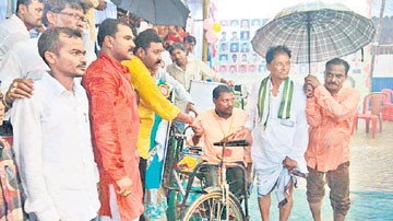 రైల్వేజోన్ కోసం దివ్యాంగుడి సైకిల్ యాత్ర